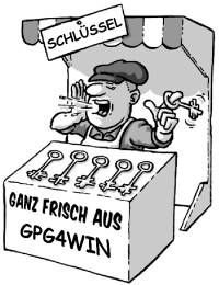 Gpg4win dagegen arbeitet - außer mit dem geheimen Schlüssel - mit einem weiteren Schlüssel (engl. „key“), der vollkommen frei und öffentlich (engl. „public“) zugänglich ist. Man spricht daher auch von einem „Public-Key“-Verschlüsselungssystem.