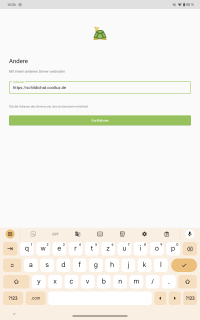 Tragt in das Adressfeld die URL vom Chatserver ein. https://schildichat.cooltux.de und geht danach auf Fortfahren .