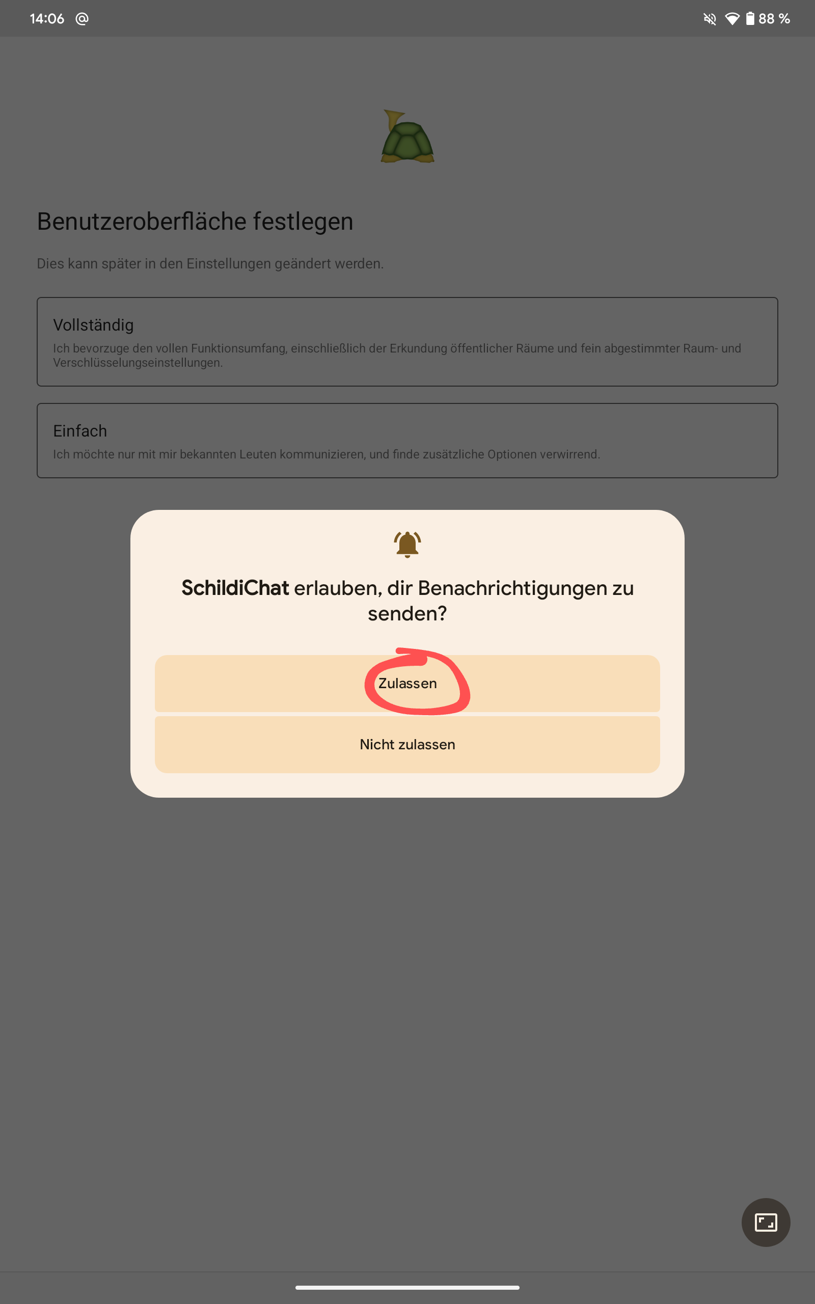 Bitte erlaubt der SchildiChat App Euch Benachrichtigungen zu melden