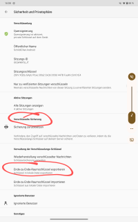 Das war es dann auch schon gewesen. Die nun kommenden Screenshots zeigen Euch weitere Einstellungsmöglichkeiten. Gerade wenn es darum geht Euren Sicherheitsschlüssel zu exportieren. Grund ist das die gesamte Kommunikation verschlüsselt verläuft und ohne diesen Schlüssel kann nach einer komplett neuen Anmeldung der alte Chatverlauf nicht mehr gelesen werden.