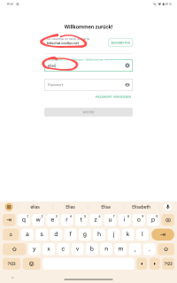 Ansicht direkt nach dem Start der App. Hier muss ausgewählt werden das Ihr bereits einen Account habt.