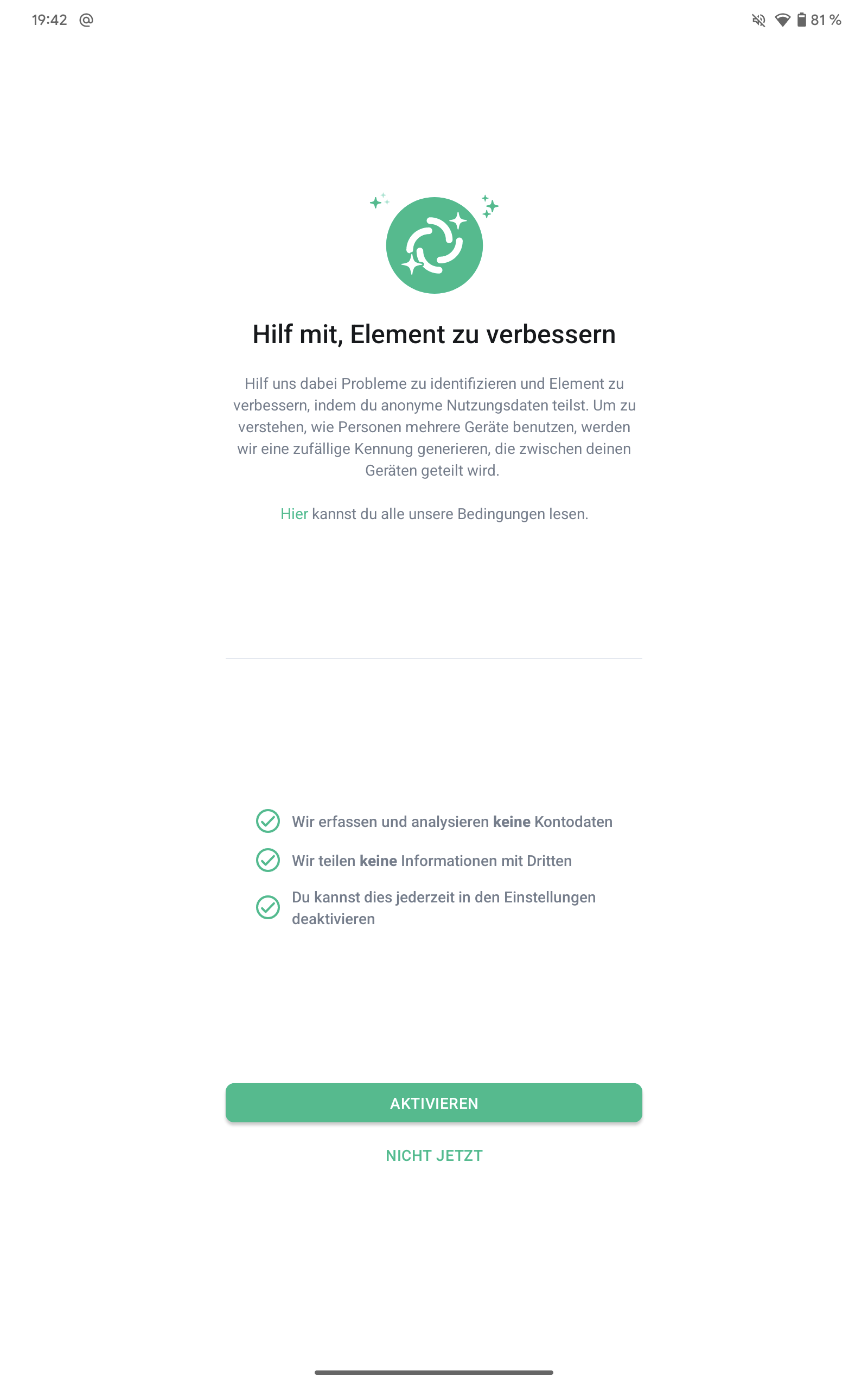 Ich habe die Einrichtung der Element App mal an Hand von Screenshots dokumentiert.
